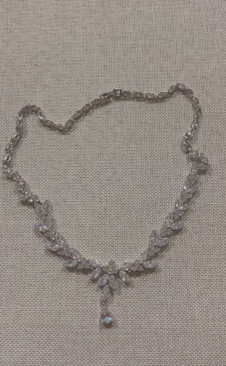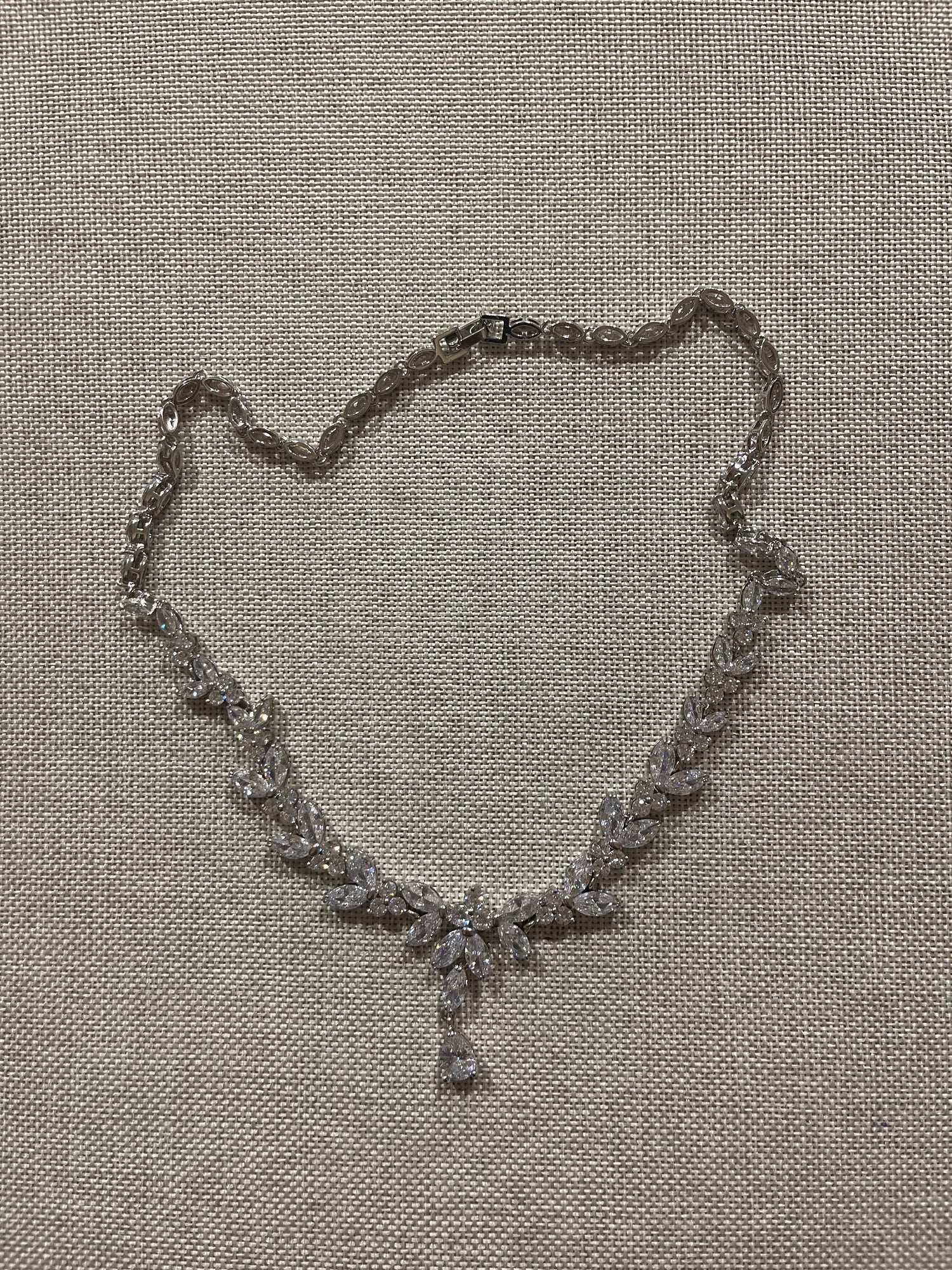 Inspired by the timeless beauty of a laurel wreath, this radiant necklace is a masterpiece of romantic elegance. Dozens of intricately set, leaf-shaped crystals create an unforgettable sparkle, flowing into a delicate teardrop pendant that adds a perfect finishing touch. Once this stunning piece is claimed, it will be gone forever—let it be the treasured heirloom that completes your look.