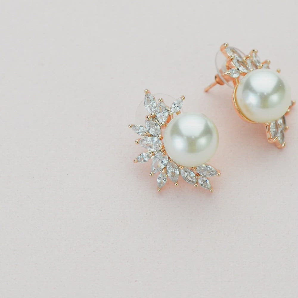 Our Winter Pearl earrings are handcrafted with CZ stones.